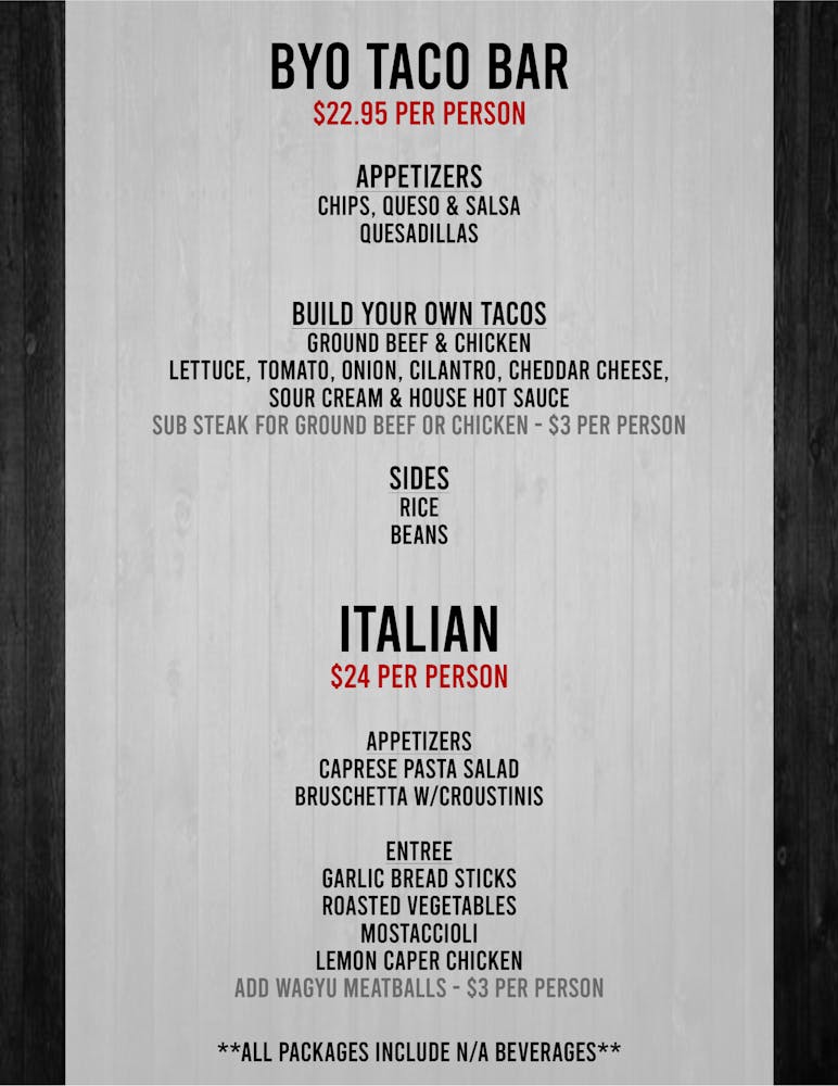 BYO Taco Bar & Italian Packages