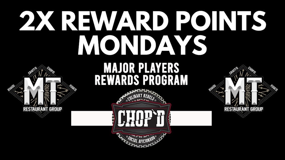 Receive 2x the Major Players Reward Points every Monday at Chop'd!