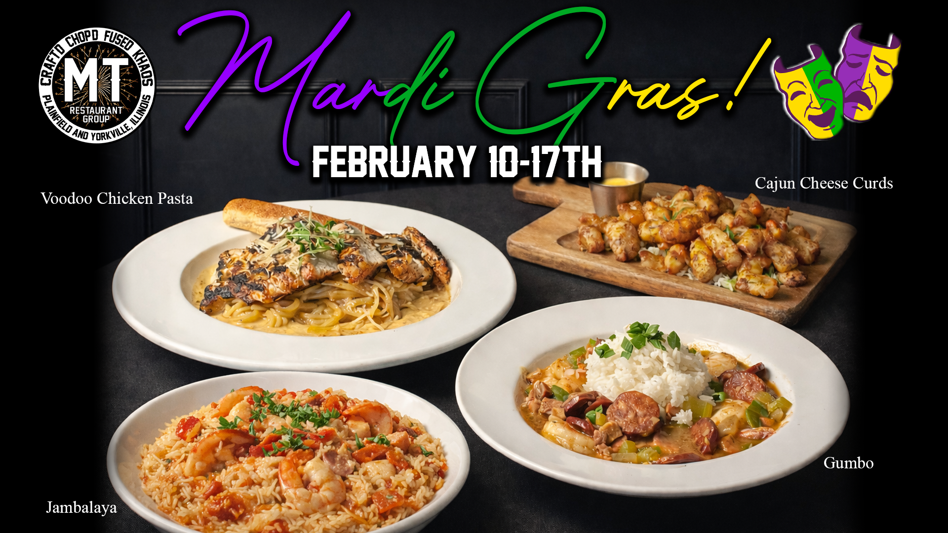 Mardi Gras Food + Drink Features are available Tuesday 2/10 - 2/17.